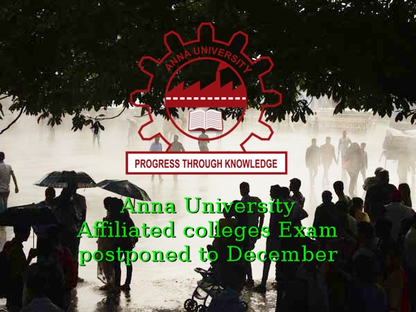 கஜா புயல் பாதிப்பின் காரணமாக இன்று (நவம்பர் 19) நடைபெறவிருந்த அண்ணா பல்கலைக் கழக தேர்வுகள் அனைத்தும் டிசம்பர் 15ம் தேதிக்கு ஒத்திவைக்கப்பட்டுள்ளதாக அப்பல்கலைக் கழக நிர்வாகம் அறிவித்துள்ளது.
