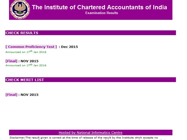 CA CPT final results are announced. Aspirants should visit the official website to check the region-wise results. The Institute of Chartered Accountants of India (ICAI) has announced the Common Proficiency Test (CPT) and CA Final results. Aspirants should visit the official website to check the region-wise results. The CPT exam was held on December 13, 2015, while the CA was held in the month of November. CPT is the first level of Chartered Accountancy in India. Steps to check the results: Go to the official website Click on the link, 'Declaration of Results of the CA Final Examination November 2015 and CPT December 2015 - (17-01-2016)' By clicking the suitable region, the candidates will be able to view their results. The candidates can take a print out for future reference. Also, the candidates can get the results through SMS. For Final Examination result: CAFNL roll number For CPT result: CACPT roll number Example: CACPT 000171 The candidates can send the SMS to 58888 to view the results.