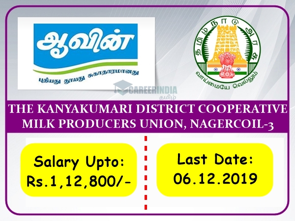 தமிழக அரசின் பால்வளத் துறையின் கட்டுப்பாட்டின் கீழ் செயல்பட்டு வரும் ஆவின் நிறுவனத்தின் கன்னியாகுமரி மாவட்டத்தில் காலியாக உள்ள பணியிடங்களை நிரப்பிடுவதற்கான அறிவிப்பு வெளியிடப்பட்டுள்ளது. துணை மேலாளர் பணிக்கான ஆட்கள் தேர்வு செய்யப்பட உள்ளனர். இப்பணியிடத்திற்குத் தகுதியும், விருப்பமும் உள்ளவர்கள் கீழ்காணும் முறையில் விண்ணப்பித்துப் பயனடையலாம்.