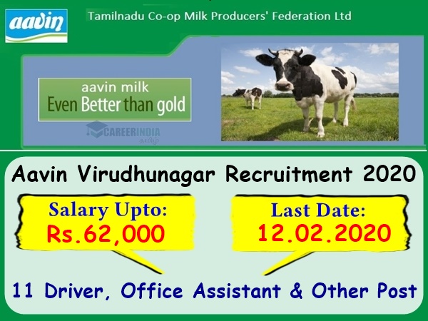விருதுநகரில் செயல்பட்டு வரும் தமிழ்நாடு கூட்டுறவு பால் உற்பத்தியாளர்கள் சங்கத்தில் (ஆவின்) காலியாக உள்ள தொழில்நுட்பவியலாளர், ஓட்டுநர், அலுவலக உதவியாளர் உள்ளிட்ட பல்வேறு பணியிடங்களை நிரப்பிடுவதற்கான அறிவிப்பு வெளியிடப்பட்டுள்ளது. இப்பணியிடங்களுக்கு 8, 10-வது தேர்ச்சி பெற்றவர்களும் விண்ணப்பிக்கலாம். தகுதியும், விருப்பமும் உள்ளவர்கள் கீழ்காணும் முறையில் விண்ணப்பித்துப் பயனடையலாம்.