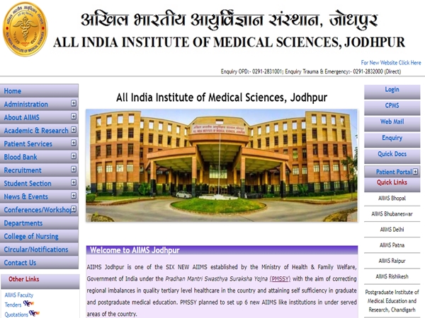 விண்ணப்பிக்க வேண்டிய இணைய முகவரி : http://www.aiimsjodhpur.edu.in