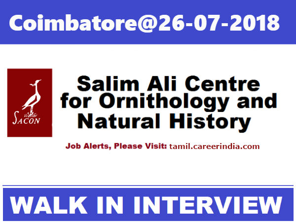 கோவை சலிம் அலி சென்டர் பார் ஆர்ந்தியாலஜி அண்ட் நேச்சுரல் ஹிஸ்ட்ரி (SACON) நிறுவனத்தில் நிரப்பப்பட உள்ள ஜூனியர் ரிசர்ச் பயோலஜிஸ்ட் பணியிடங்களுக்கான அறிவிப்பு வெளியிடப்பட்டுள்ளது.