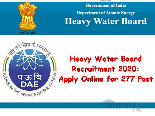 மத்திய அரசின் அணுசக்தி துறையின் கீழ் செயல்பட்டு வரும் 'ஹெவி வாட்டர் போர்டு' நிறுவனத்தில் காலியாக உள்ள தொழில்நுட்ப அதிகாரி, செவிலியர், ஆராய்ச்சியாளர் உள்ளிட்ட மொத்தம் 277 பணியிடங்களை நிரப்பிடுவதற்கான அறிவிப்பு வெளியிடப்பட்டுள்ளது. இப்பணியிடங்களுக்குத் தகுதியும், விருப்பமும் உள்ளவர்கள் கீழ்காணும் முறையில் விண்ணப்பித்துப் பயனடையலாம்.