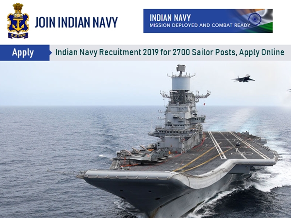 இந்திய கடற்படையில் செய்லர் (எஸ்.எஸ்.ஆர். - பிப்ரவரி 2020) என்னும் பயிற்சி சேர்க்கையின் அடிப்படையில் 2200 பேரும், செய்லர் (ஏ.ஏ. - பிப்ரவரி 2020) என்ற பயிற்சிப் பிரிவில் 500 பேரும் என 2700 பயிற்சியுடன் கூடிய மாலுமி பணிக்கான அறிவிப்பு வெளியிடப்பட்டுள்ளது. இதற்கு 12-வது தேர்ச்சி பெற்றவர்கள் விண்ணப்பிக்கலாம். திருமணமாகாத இந்திய இளைஞர்களிடம் இருந்து விண்ணப்பங்கள் வரவேற்கப்படுகின்றன.