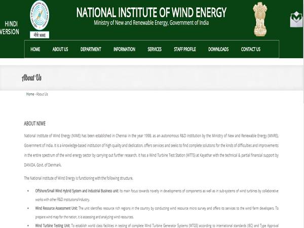 சென்னையில் உள்ள காற்றாலை மின்உற்பத்தி மையத்தில் (NIWE) காலியாக உள்ள பல்வேறு பணியிடங்கள் நிரப்பப்பட உள்ளதால் தகுதியானவர்கள்களிடமிருந்து விண்ணப்பங்கள் வரவேற்கப்படுகின்றன.