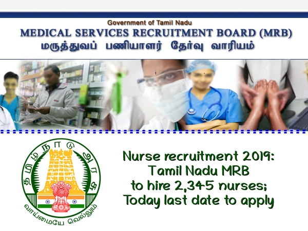 தமிழக அரசிற்கு உட்பட்ட சுகாதாரத்துறை அமைச்சகத்தின் கீழ் செயல்பட்டு வரும் அரசு மருத்துவமனைகளில் காலியாக உள்ள 2345 செவிலியர் பணியிடங்களை நிரப்ப அறிவிப்பு வெளியிடப்பட்டு விண்ணப்பங்கள் வரவேற்கப்பட்டு வருகின்றன. தமிழ்நாடு மருத்துவப் பணியாளர் தேர்வாணையம் சார்பில் ஆட்கள் தேர்வு செய்யப்பட உள்ள நிலையில் இப்பணியிங்களுக்கு விண்ணப்பிக்க இன்றே கடைசி நாளாகும்.