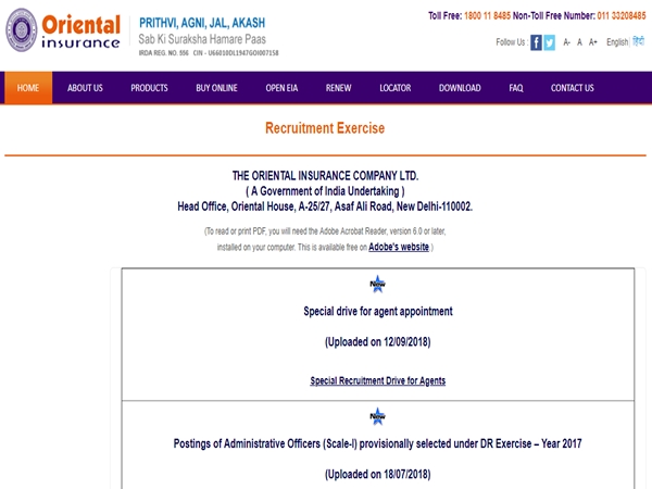 துறை : ஓரியண்டல் காப்பீட்டு நிறுவனம்