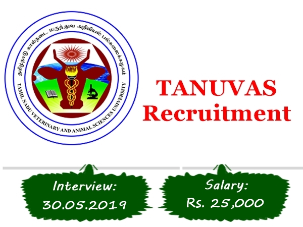 விண்ணப்பிக்கும் முறை : தகுதியும் விருப்பமும் உள்ளவர்கள் www.tanuvas.ac.in என்ற இணையதளத்தில் உள்ள அதிகாரப்பூர்வ அறிவிப்பில் கொடுக்கப்பட்டுள்ள முகவரியில் 30.05.2019 அன்று காலை 11.00 மணி முதல் நடைபெறும் நேர்முகத் தேர்வில் கலந்து கொள்ள வேண்டும்.