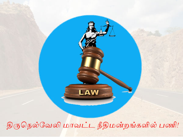 திருநெல்வேலி மாவட்டத்தில் உள்ள நீதிமன்றங்களில் காலியாக உள்ள கம்யூட்டர் ஆப்ரேட்டர், ஜெராக்ஸ் ஆப்ரேட்டர், மசால்ஜி, இரவுக்காவலர் மற்றும் துப்பரவு பணியாளர் பணியிடங்களுக்கான அறிவிப்பு வெளியிடப்பட்டுள்ளது.