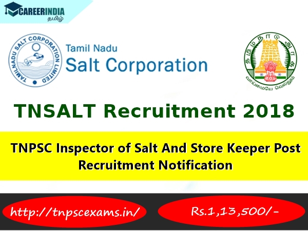 அதிகாரப்பூர்வ அறிவிப்பு : http://www.tnpsc.gov.in/notifications/2018_38_notyfn_INSPECTOR_SALT_STORE_KEEPER.pdf