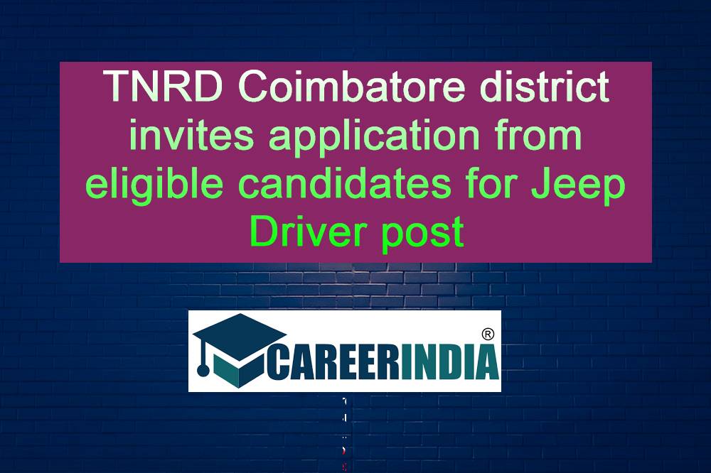 கோயம்புத்தூர் மாவட்டம், ஊரக வளர்ச்சி மற்றும் ஊராட்சி அலகின் 31.08.2022 வரை, அரசு தலைப்பில் காலியாக உள்ள 3 ஜீப் ஓட்டுநர்கள் காலிப்பணியிடங்கள் நேரடி நியமனம் வாயிலாக நியமிக்கப்பட உள்ளனர்.