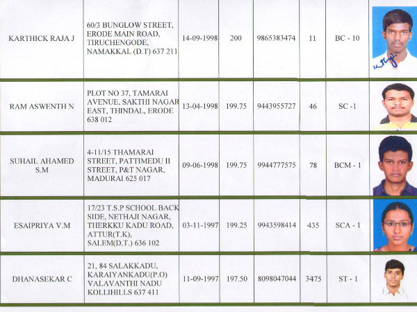 இத்தரவரிசைப் பட்டியலில், 23 மாணவர்கள் 200க்கு 200 கட்-ஆப் பெற்றுள்ளனர். தரவரிசைப் பட்டியலில் கோவை சூலூரைச் சேர்ந்த கீர்த்தி பாலன் என்ற மாணவர் முதலிடம் பெற்றுள்ளார். தருமபுரி நிஷாந்த் ராஜன் 2ம் இடமும், திருச்சி முகேஷ் கண்ணன் 3ம் இடமும் பெற்றுள்ளனர்.