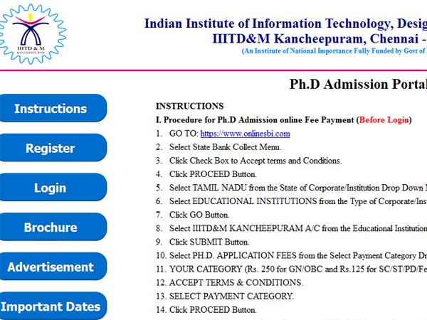 மேலும் விவரங்களுக்கு http://www.iiitdm.ac.in/phd2015/என்ற இணையதளத்தைப் பார்க்கலாம்.